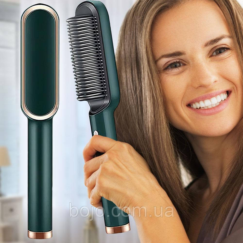 Електричний гребінець-випрямляч розроблена для швидкого випрямлення волосся за 4-8 хвилин, при цьому волосся стає блискучим і гладким. Випрямляч поєднує в собі масажну щітку для волосся та прасок. Тепер Ви можете випрямляти та розгладжувати волосся, просто розчісуючи його. Електрогребінець має двосторонню нагрівальну пластину з 24 канавками, які збільшують площу контакту з поверхнею та обробляють більше волосся з кожним рухом. Завдяки турмаліновому покриттю відбувається дбайливе нагрівання волосся, тому волосся не травмується і не обпалюється.