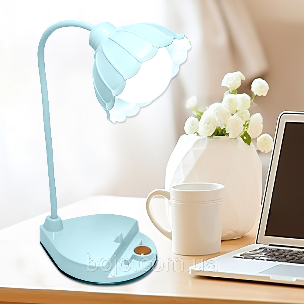 Настільна лампа Квіточка з акумулятором, зарядка від USB, Блакитний (HA-33)